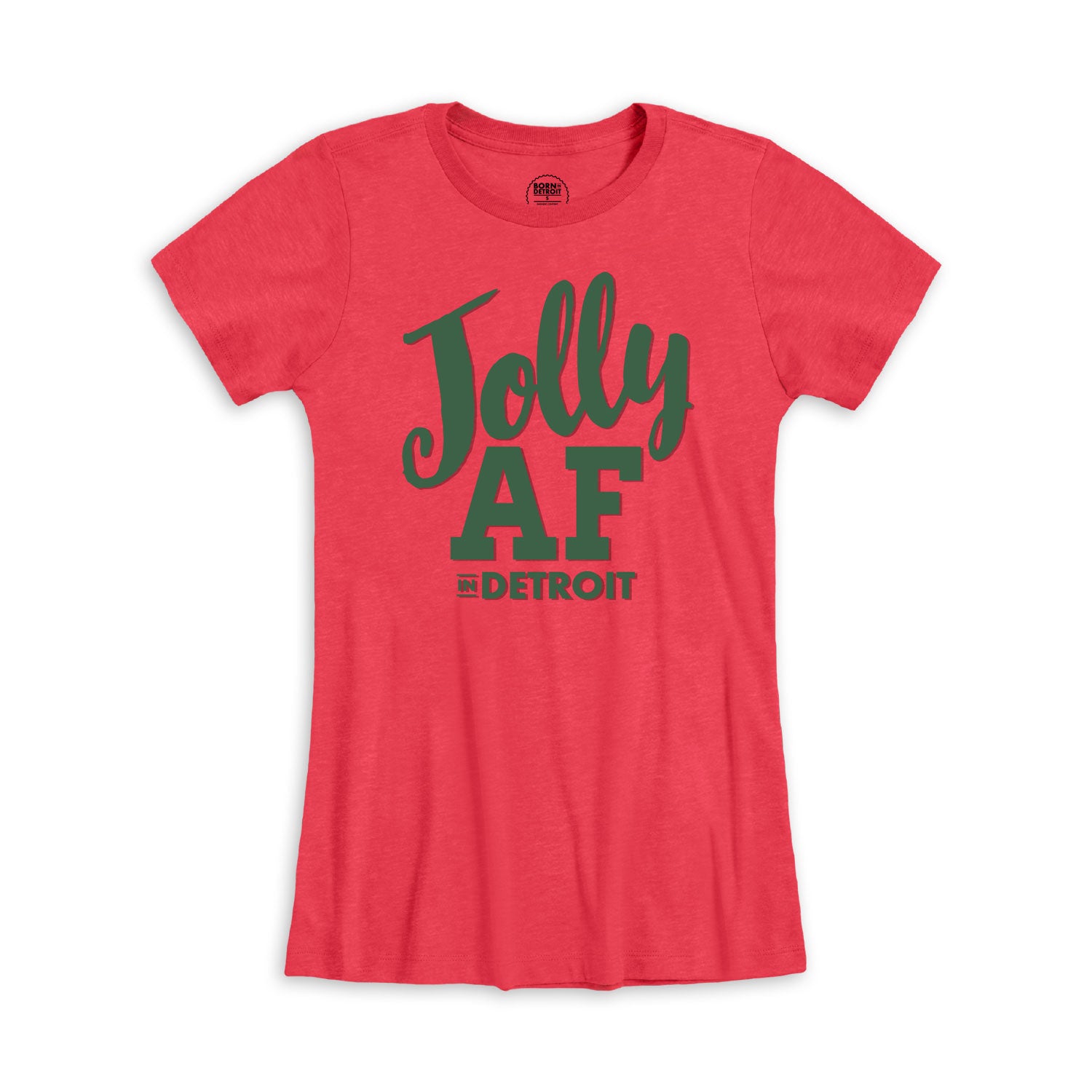 Women's Jolly AF In Detroit Christmas T-Shirt - S is backordered and will ship as soon as it is back in stock.