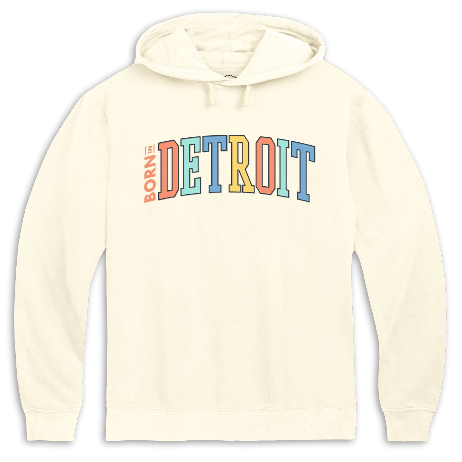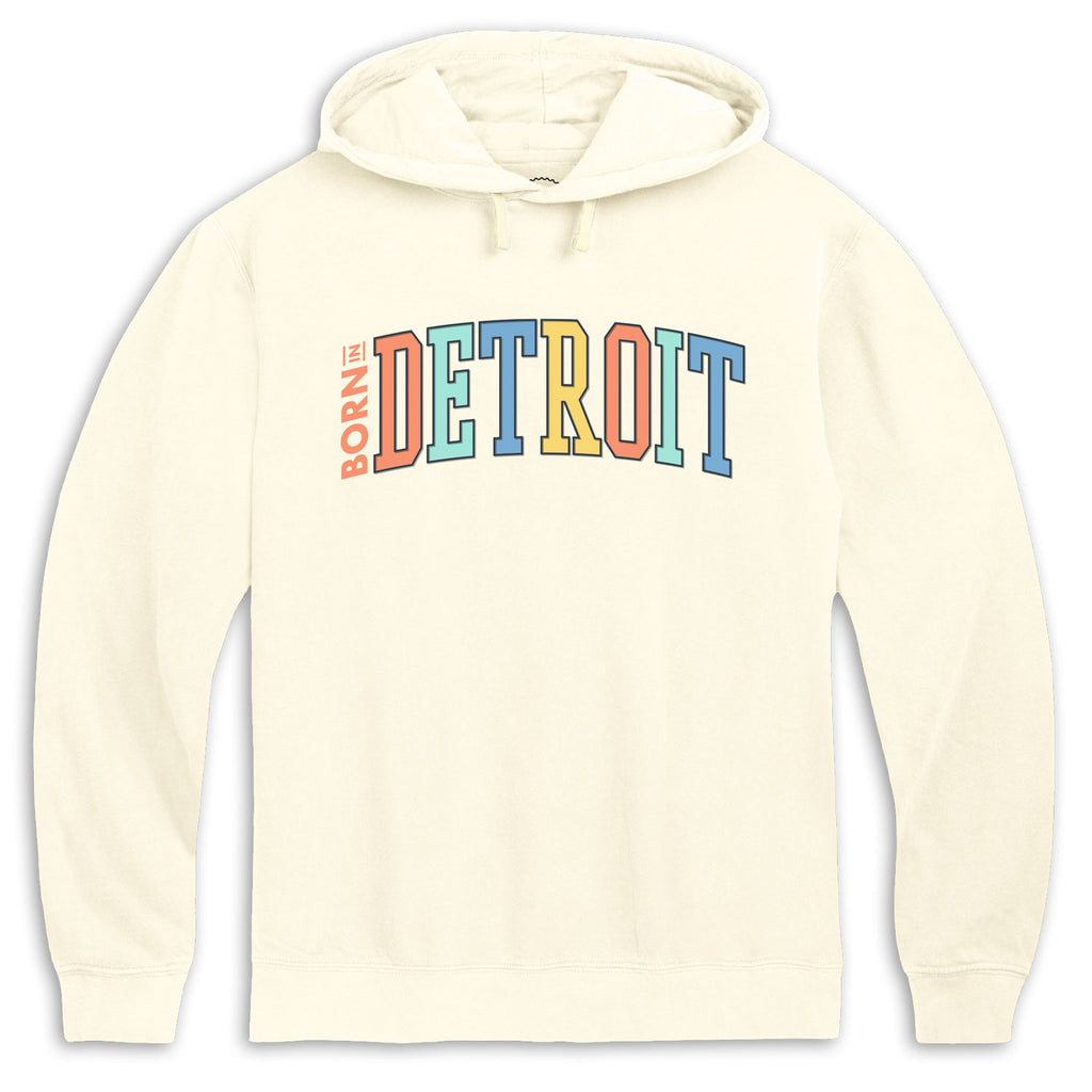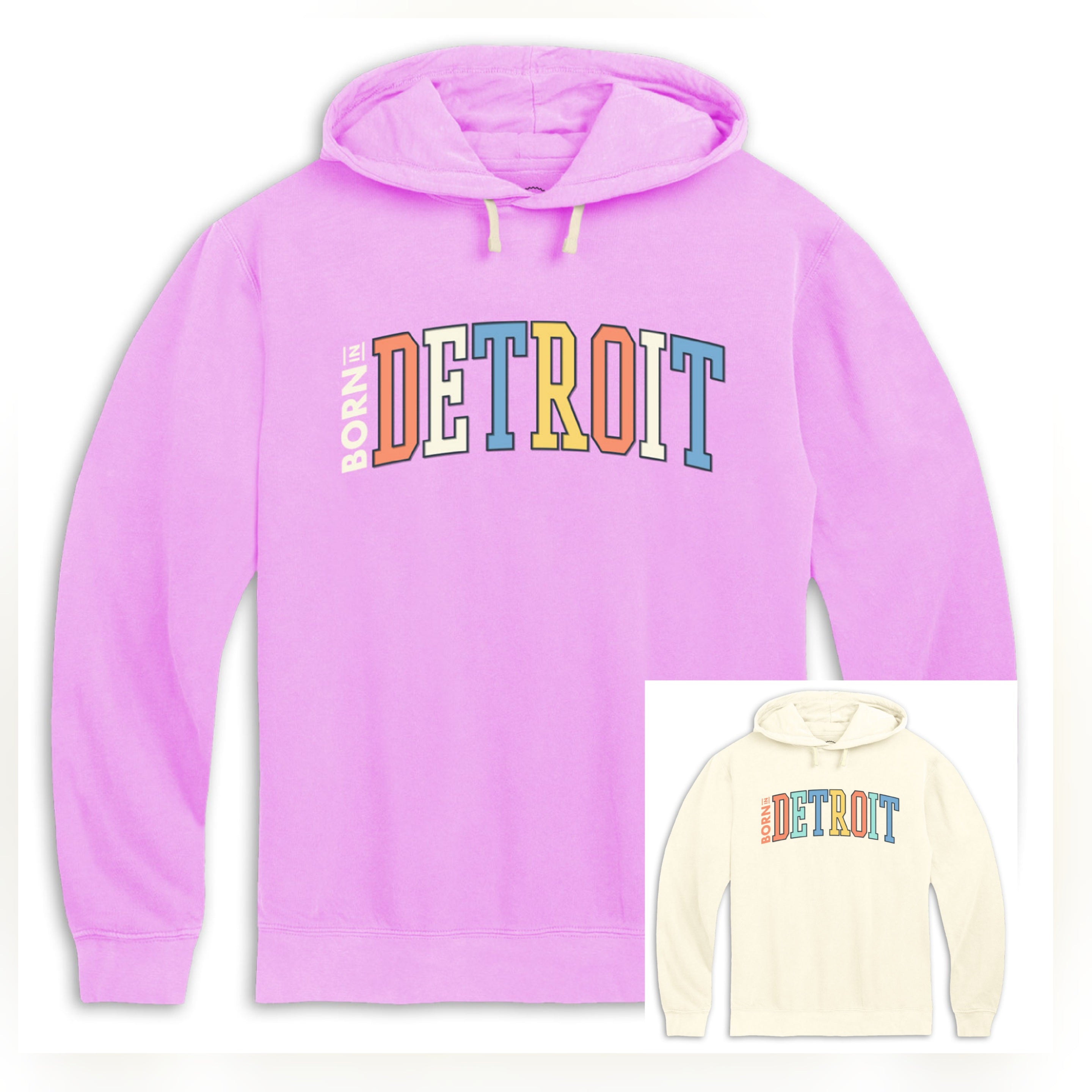 • Jersey lined hood with natural colored flat cord, white flat cord on color white